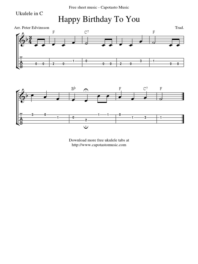 Happy Birthday Ukulele Tab Sheet Music Easy Music